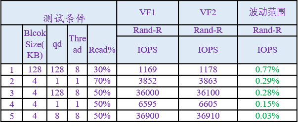 憶聯(lián)ESSD產(chǎn)品采用業(yè)內(nèi)先進(jìn)的SR-IOV技術(shù),實(shí)現(xiàn)虛擬機(jī)下的存儲資源共享,減少CPU資源占用。該服務(wù)器廠商憶聯(lián)ESSD后,在原先的128核CPU下,每個盤片節(jié)省2個 vCPU core,每個節(jié)點(diǎn)節(jié)省24個vCPU core 。同時,憶聯(lián)ESSD具備性能隔離功能特性,保證每個虛擬SSD在使用規(guī)定容量的情況下實(shí)現(xiàn)性能互不影響,其具備的Qos,實(shí)現(xiàn)虛擬SSD之間的負(fù)載均衡。憶聯(lián)ESSD在原SR-IOV功能的基礎(chǔ)上進(jìn)行了令牌桶調(diào)度優(yōu)化,實(shí)現(xiàn)部分復(fù)雜業(yè)務(wù)場景下VF之間性能的相互影響從10%降低到5%以內(nèi)。