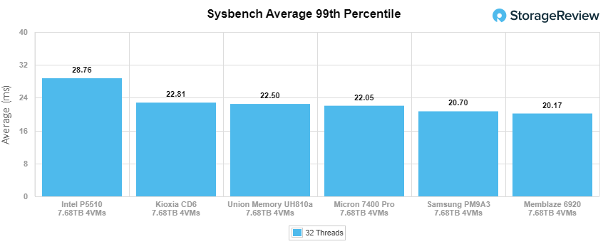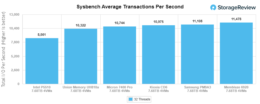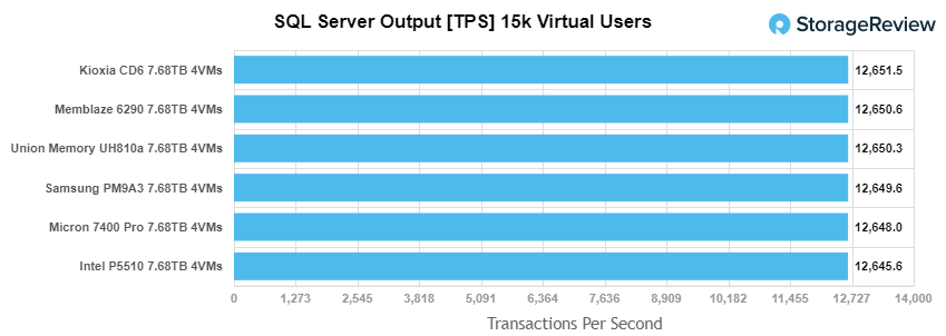 在SQL Server事務基準測試中,UH810a以穩定的12,650.3TPS位居第三,并實現了2.83ms的平均延遲。