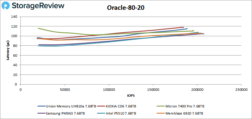 在Oracle 80-20測試中,UH810a以114.9μs延遲實現了188K IOPS的峰值性能。