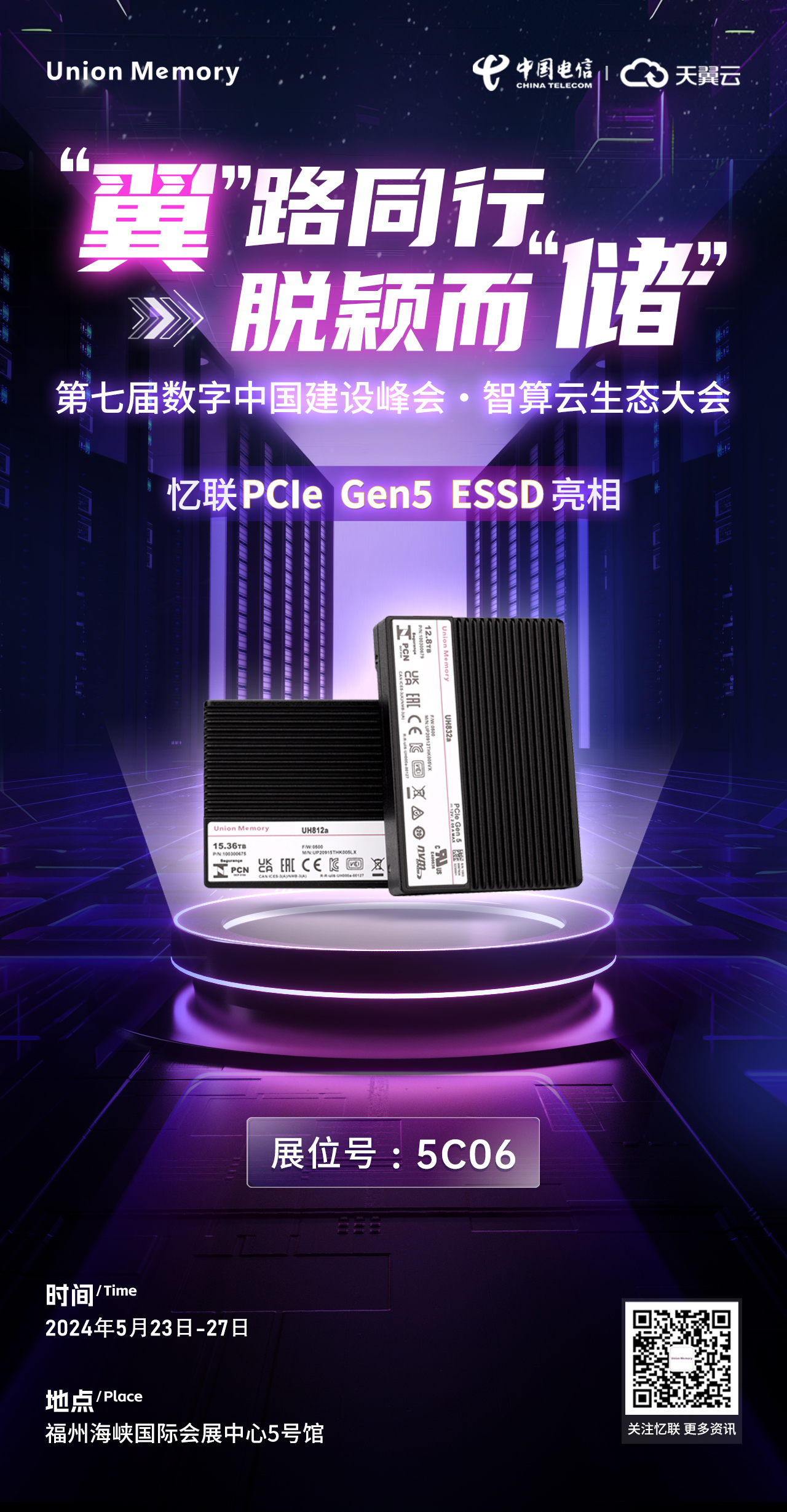 作為“數字中國”的積極參與者和踐行者,憶聯基于領先的存儲技術、端到端存儲解決方案,聯合眾多OEM廠商為云計算產業筑基,與合作伙伴共創云生態。此次大會,憶聯將攜旗下最新PCIe Gen5企業級固態硬盤亮相,與行業各方共謀智算時代存儲新機遇,探討存儲技術與云計算產業的深度融合之道。