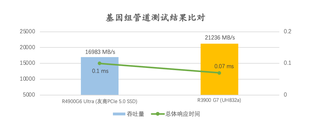 在本次測試中,搭載UH832a的H3C UniServer R3900 G7服務器,共完成250個基因組作業的處理,吞吐量高達21236 MB/s,總體響應時間為0.07毫秒。這一成績突破了之前H3C UniServer R4900G6 Ultra服務器的數據(0.10毫秒),更進一步刷新了該榜單的記錄。