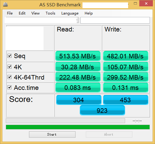 AS SSD benchmark(以下簡稱 AS SSD )是一款來自德國的 SSD 免費性能測試軟件,涵蓋持續(xù)性讀寫、單線程4KB隨機讀寫、64線程4KB隨機讀寫以及硬盤尋道時間等關(guān)鍵數(shù)據(jù)的測試,最后還會根據(jù)公式將成績標(biāo)準(zhǔn)化,能比較科學(xué)的反映固態(tài)硬盤的真實性能。