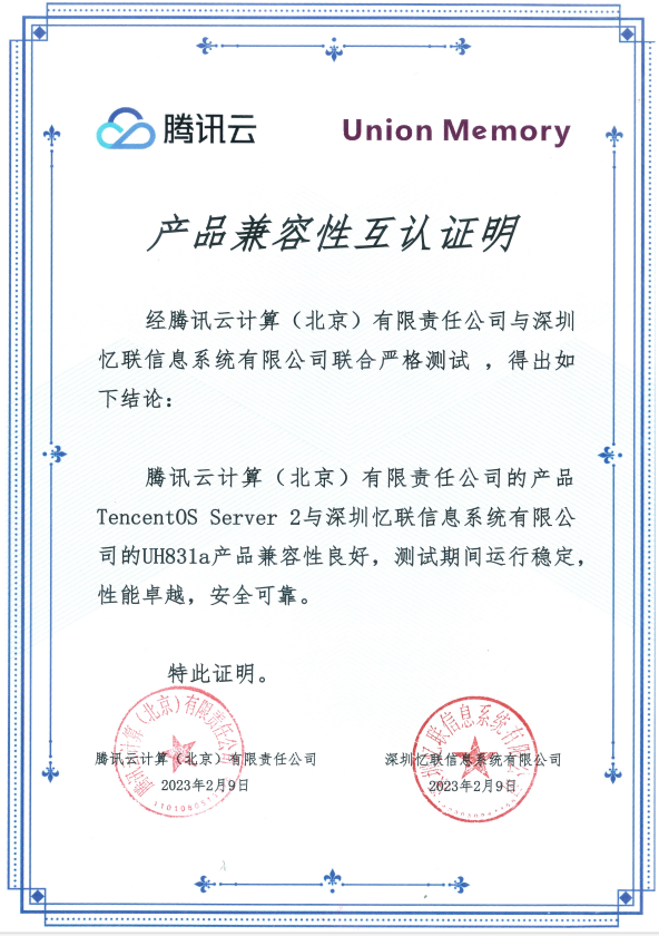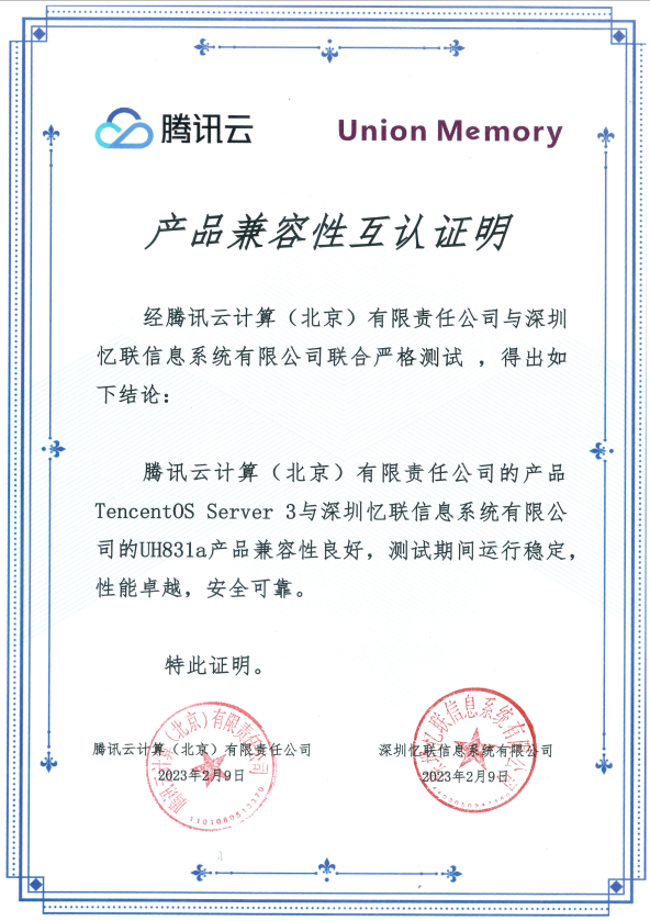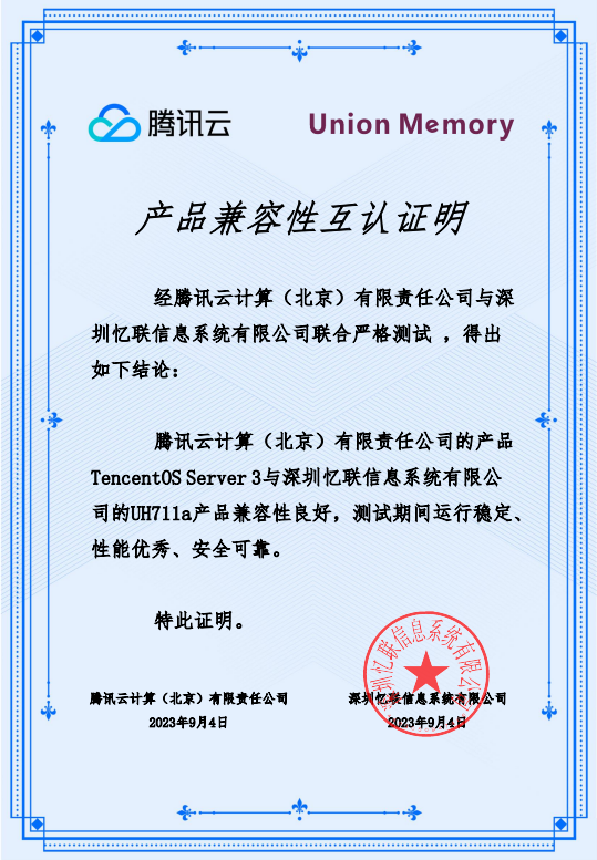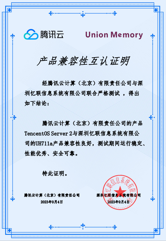 近日,憶聯(lián)企業(yè)級SSD產(chǎn)品UH811a / UH831a和憶聯(lián)數(shù)據(jù)中心級SSD產(chǎn)品UH711a與騰訊云操作系統(tǒng)完成產(chǎn)品兼容性互認(rèn)證明。在聯(lián)合測試環(huán)節(jié),UH811a / UH831a 和 UH711a與 TencentOS Server 3和TencentOS Server 2 的兼容性表現(xiàn)良好,測試期間運行穩(wěn)定、性能優(yōu)秀、安全可靠,可滿足用戶在TencentOS Server 系統(tǒng)下的各項應(yīng)用請求,最終成功與兩大操作系統(tǒng)獲得產(chǎn)品兼容性互認(rèn)證明。