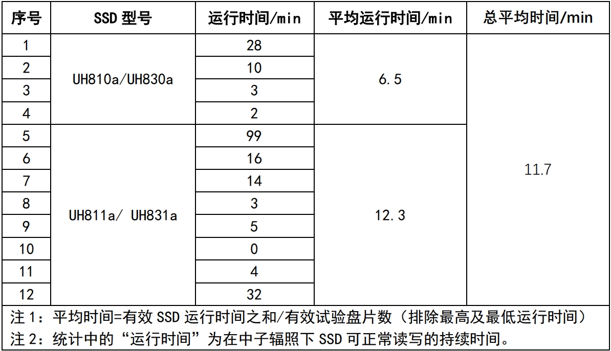 結果表明,憶聯SSD平均運行時間達11.7分鐘,充分驗證了憶聯SSD在較高的中子通量自然環境條件下,具備可抵抗一定中子輻照的高可靠性,自帶的ECC、RAID數據恢復、重讀等功能,也能夠及時糾正中子帶來的比特翻轉等問題,確保在SSD使用壽命范圍內正常運行,可為高海拔數據中心提供高可靠的存儲性能,保障運營商在各類高風險場景下仍能保持業務不中斷,數據不丟失。