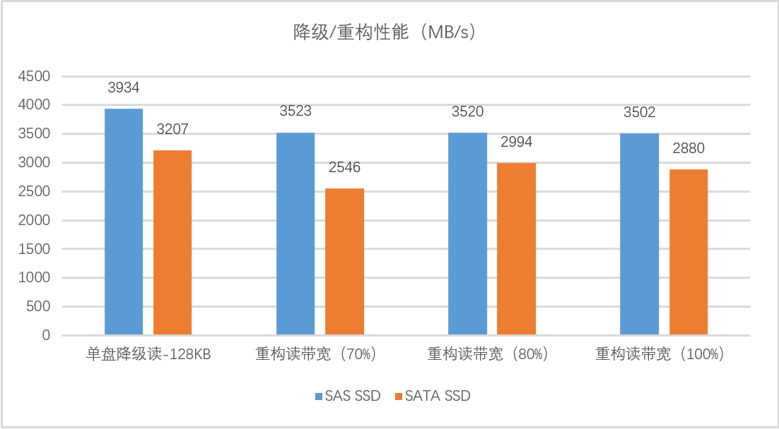 ▲憶聯SAS SSD在單盤故障降級&重構讀性能下的表現