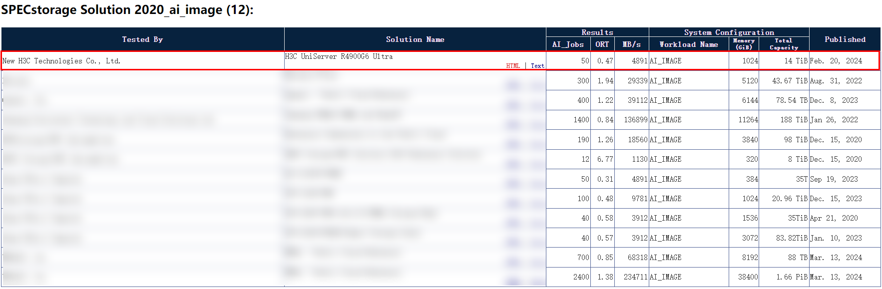 近日,國際標準性能評估組織(Standard Performance Evaluation Corporation, SPEC)的SPECstorage Solution 2020基準評測中,搭載憶聯企業級固態硬盤UH811a的新華三UniServer R4900 G6 Ultra服務器在AI_IMAGE、EDA_BLENDED、SWBUILD場景中性能表現優異,總體響應時間(overall response time, ORT)均處于領先水平,從側面印證了憶聯企業級產品可為服務器在性能、可靠性、能效和可擴展性方面帶來顯著優勢。