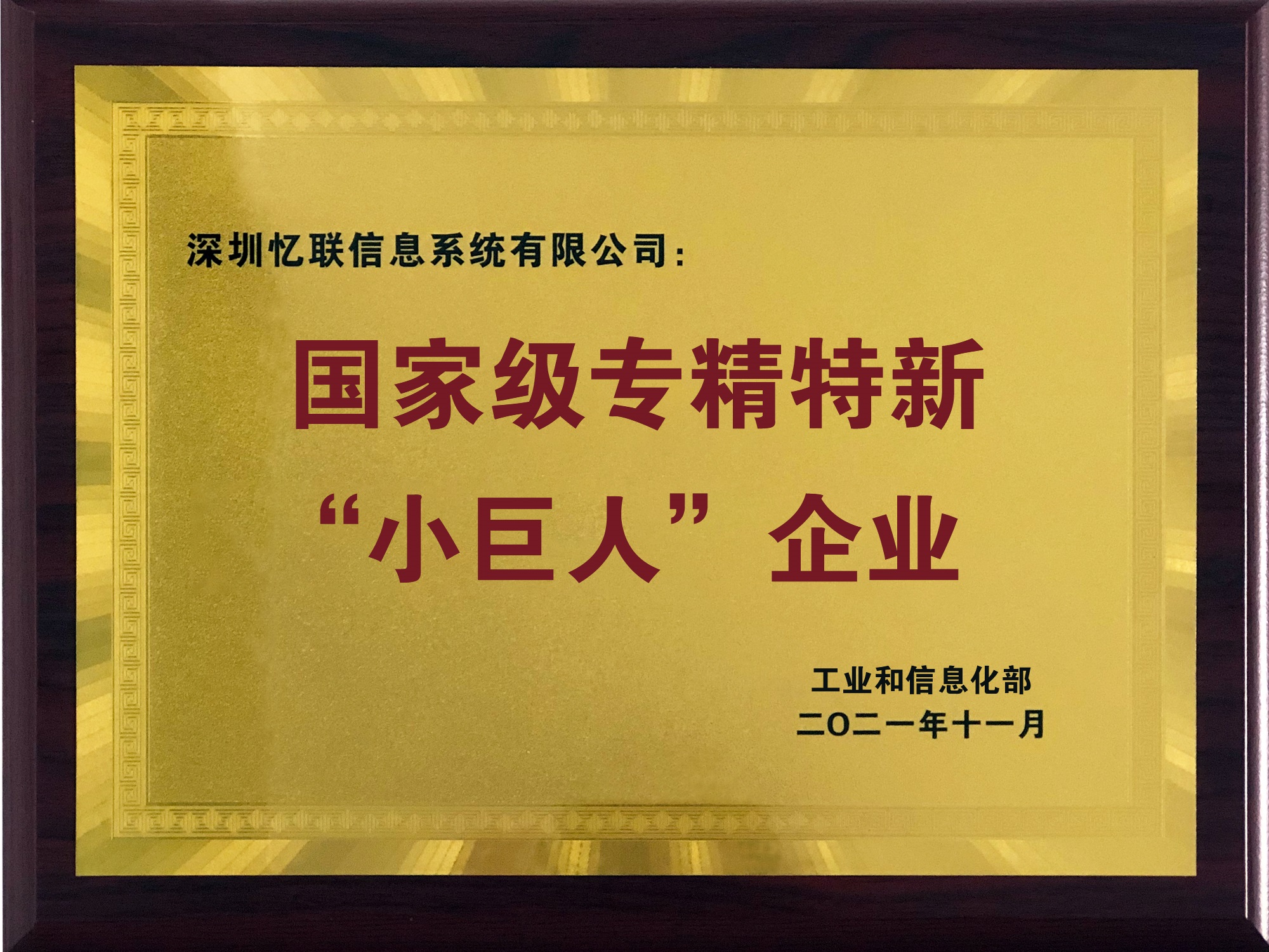 2021年7月19日,工信部公示第三批專精特新“小巨人”企業(yè)名單,深圳憶聯(lián)信息系統(tǒng)有限公司順利上榜。經(jīng)過為期5天的公示,憶聯(lián)正式斬獲殊榮。