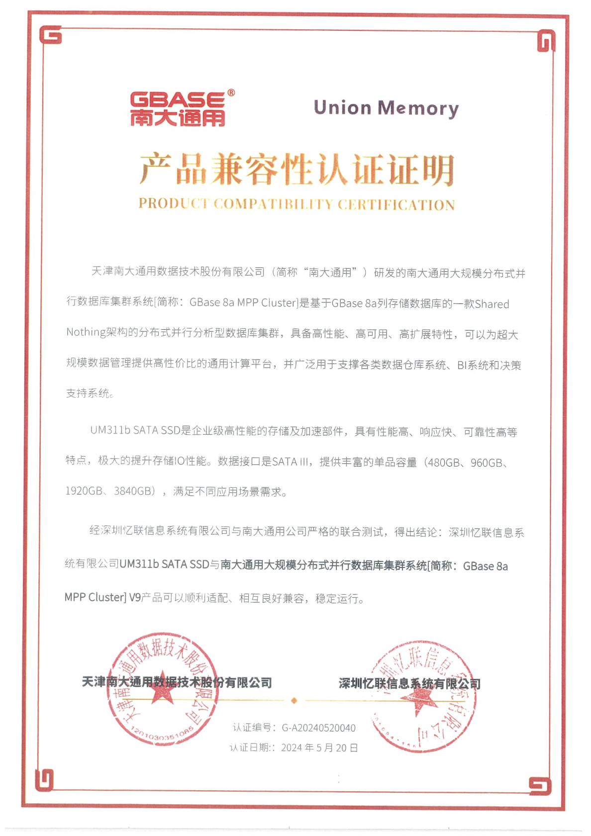 近日,憶聯旗下企業級SATA SSD UM311b成功通過SATA-IO協議標準認證、微軟WHQL和紅帽操作系統兩項OS兼容認證,以及獲得Gbase數據庫這一行業認證,取得這一系列權威認證不僅彰顯了憶聯UM311b在性能、兼容性及穩定性方面的卓越表現,也進一步鞏固了憶聯在企業級存儲市場的領先地位。