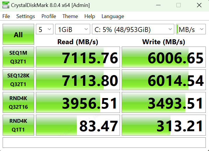順序讀寫超過7000 MB/s、6000 MB/s