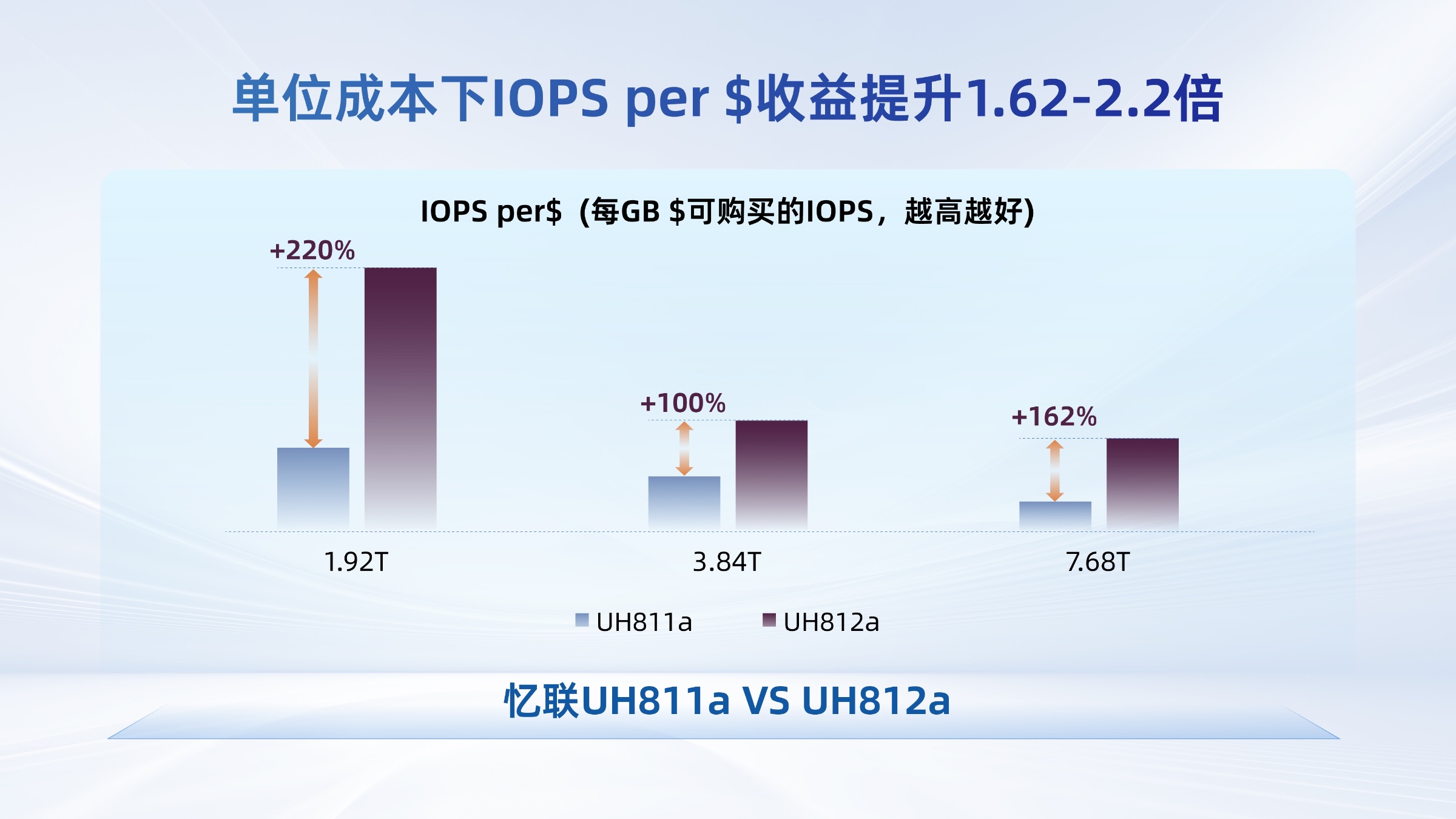 在DeepSeek等大模型加速落地的今天,存儲系統的價值已從單純的“數據容器”升級為“智能化基礎設施的核心組件”。憶聯基于產品的高能效比設計、場景化技術特性構建及智能化運維能力,為數據中心客戶提供最佳TCO存儲解決方案。以UH812a為例,其單位成本下的性能(IOPS per $)指標比上一代Gen4產品(UH811a/UH831a)提升了1.62-2.2倍。這不僅能為客戶節省數據中心整體使用成本,同時存儲效率、可靠性的提升也將為用戶提供更好的業務體驗,助力企業長期業務增長,實現經濟效益與社會效益的協同與共贏,增強企業的市場競爭力。
