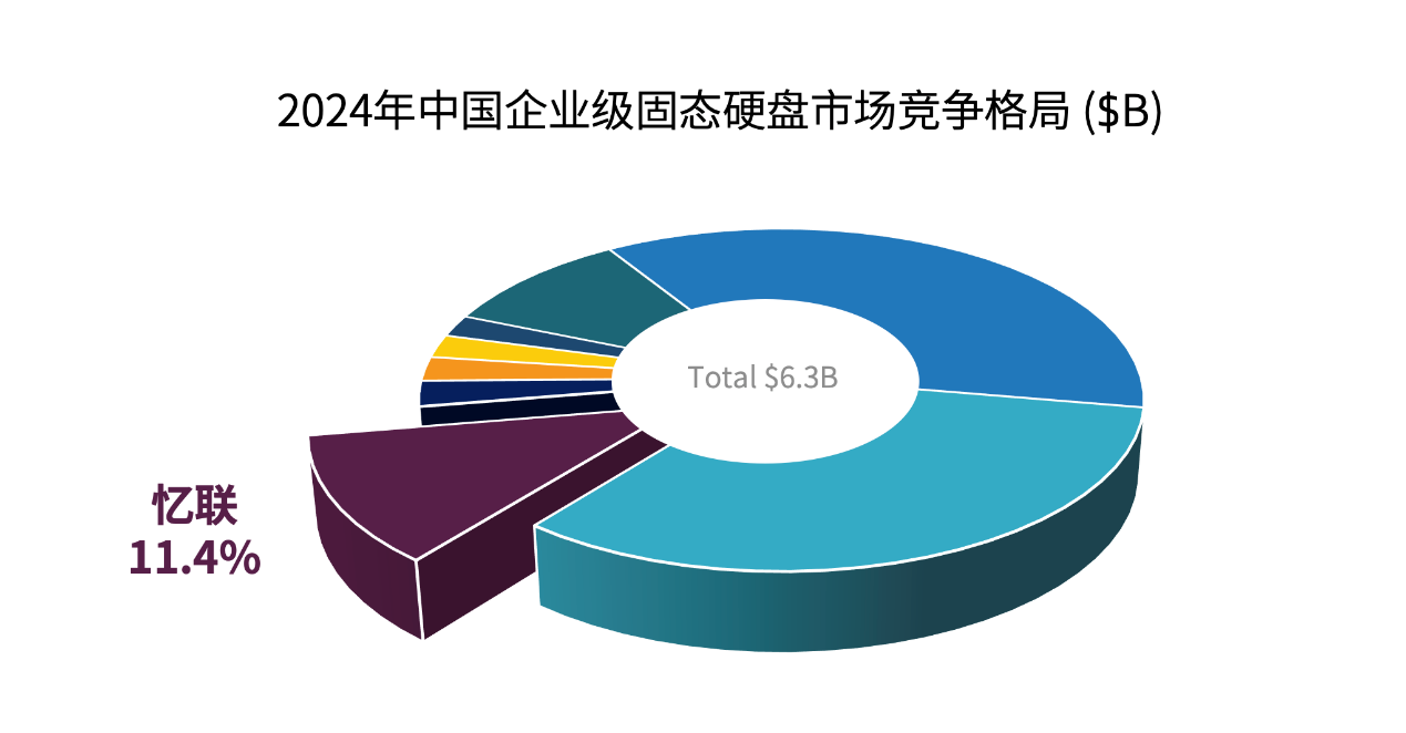 全球權威調研機構IDC最新《2024中國企業級固態硬盤市場跟蹤報告》顯示,憶聯以11.4%的市場份額(覆蓋PCIe/SATA/SAS接口類型)問鼎中國企業級固態硬盤市場國產廠商冠軍。