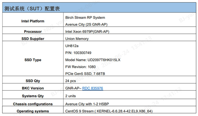 以下是本次憶聯UH812a在Intel Birch Stream平臺上進行性能測試的相關配置詳情。