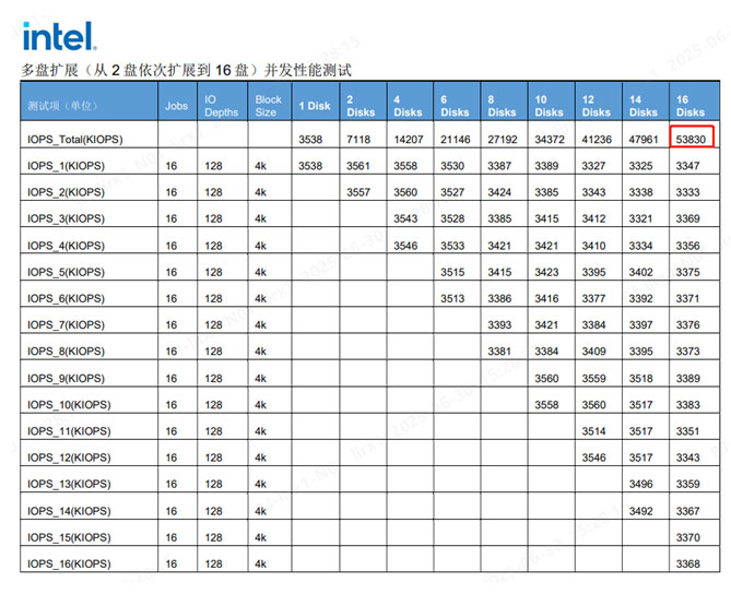 卓越擴展與兼容性:憶聯UH812a不僅在單盤性能上領先,在多盤擴展場景下(1至16盤)同樣展現顯著優勢:多盤并發性能保持線性擴展,帶寬突破230GB/s;并發負載遞增時性能穩定,IOPS突破5000萬且無瓶頸,盤間性能波動率低于5%。這充分驗證了其卓越的并發處理能力與強大的協同擴展能力。