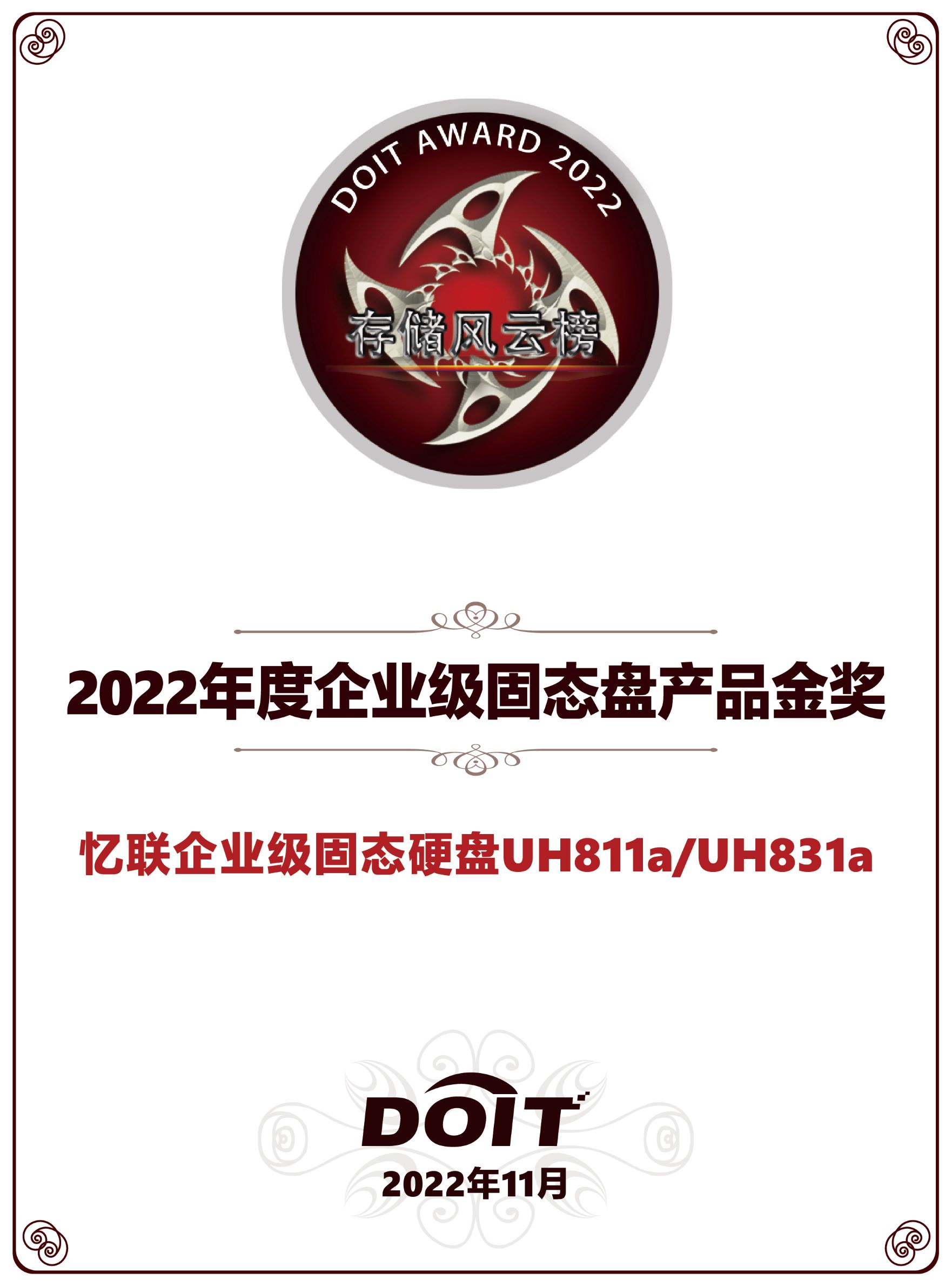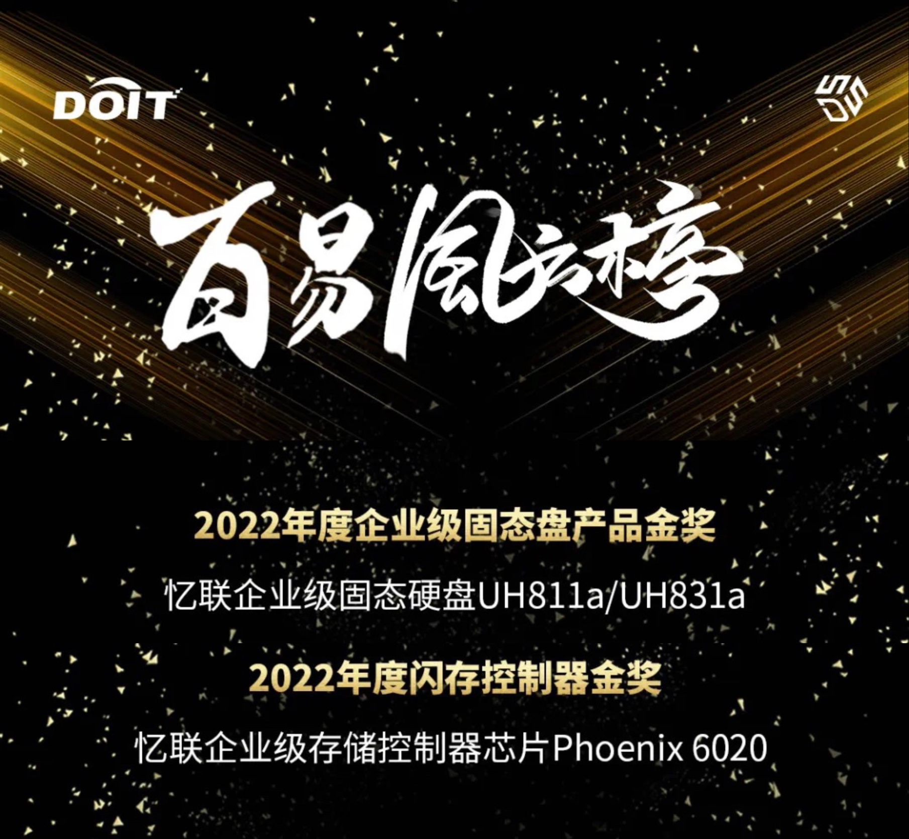 2022年11月9日,由百易傳媒(DOIT)主辦,以“數(shù)據(jù)覺醒新時(shí)代”為主題的2022中國數(shù)據(jù)與存儲(chǔ)峰會(huì)在北京舉行,并重磅發(fā)布了《年度評(píng)選之百易風(fēng)云榜單》,經(jīng)官方層層篩選和專家評(píng)審,憶聯(lián)分別斬獲2022年度企業(yè)級(jí)固態(tài)硬盤產(chǎn)品金獎(jiǎng)與2022年度閃存控制器金獎(jiǎng)。