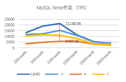 圖4:MySQL只寫場景下憶聯(lián)SSD與友商性能對比