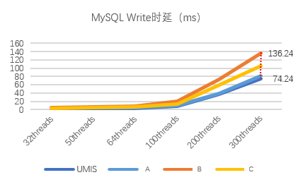 如圖4所示,MySQL寫場景下,憶聯(lián)SSD始終保持著明顯優(yōu)勢,性能表現(xiàn)強(qiáng)勁。在吞吐量上,對比友商最大有266%的提升;在時延上,最大有83%左右的下降,由此可見,憶聯(lián)UH8系SSD可助力MySQL只寫場景下存儲性能的充分發(fā)揮。