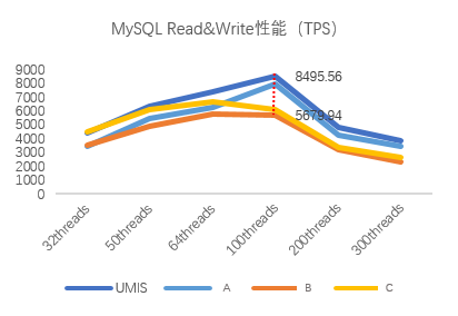 圖5:MySQL混合讀寫場景下憶聯(lián)SSD與友商性能對比